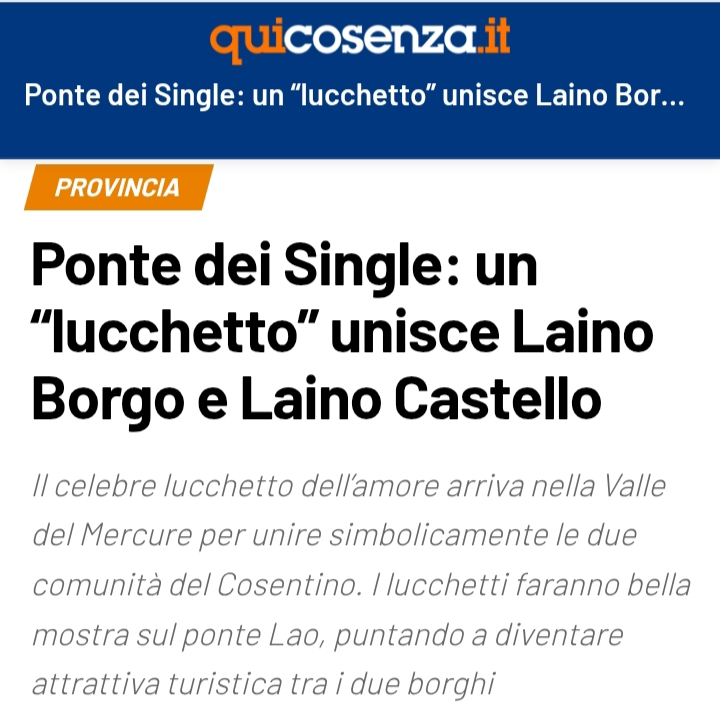 Laino Borgo e Castello unite con e nei lucchetti Leggi l’articolo completo sull’Eco dello Jonio